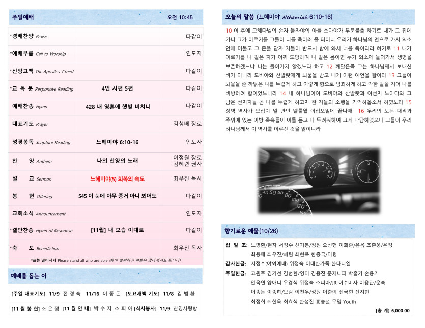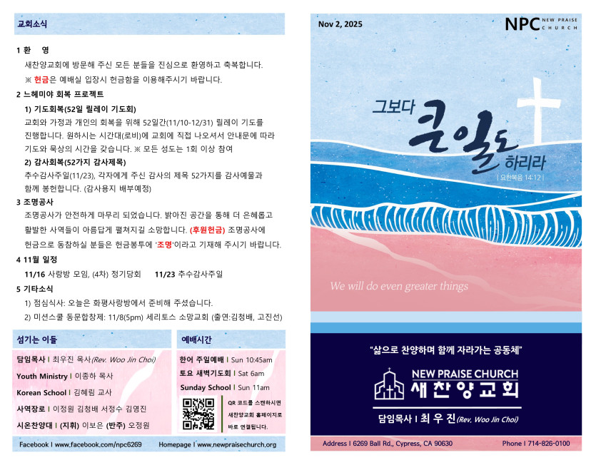 November 01, 2025 . 새찬양교회 [110225] 주일예배 주보