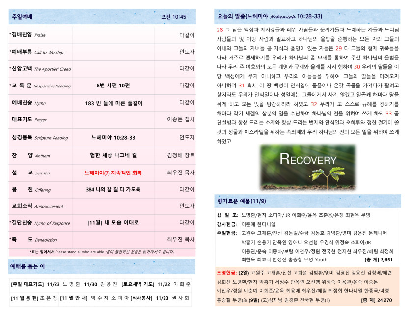 November 15, 2025 . 새찬양교회 [111625] 주일예배 주보