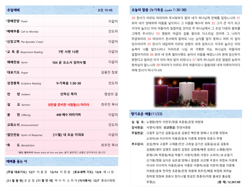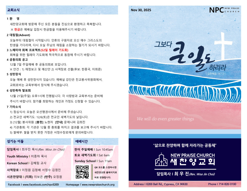 November 29, 2025 . 새찬양교회 [113025] 주일예배 주보