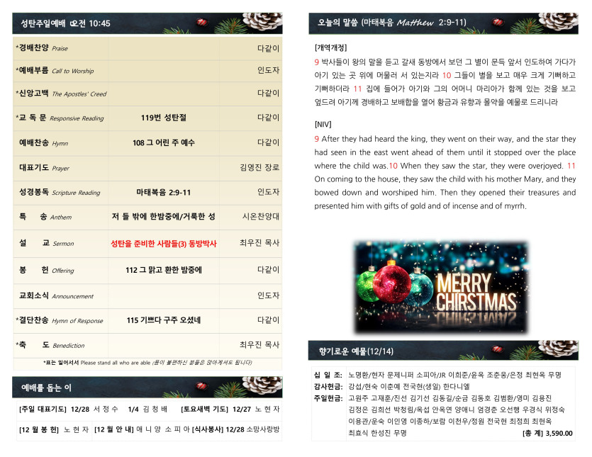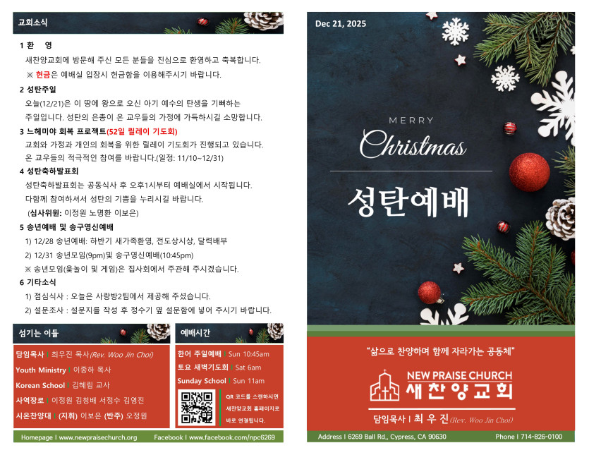 December 20, 2025 . 새찬양교회 [122125] 주일예배 주보