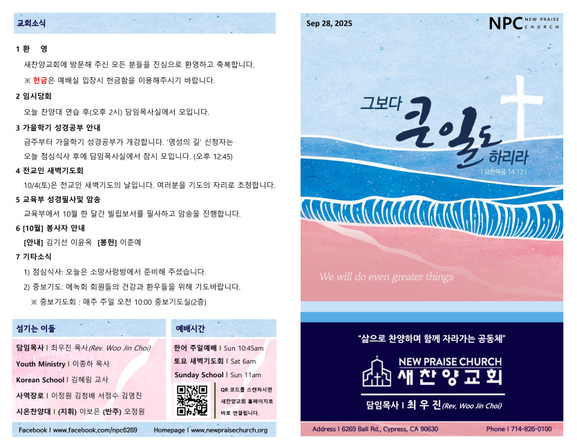September 27, 2025 . 새찬양교회 [092825] 주일예배 주보