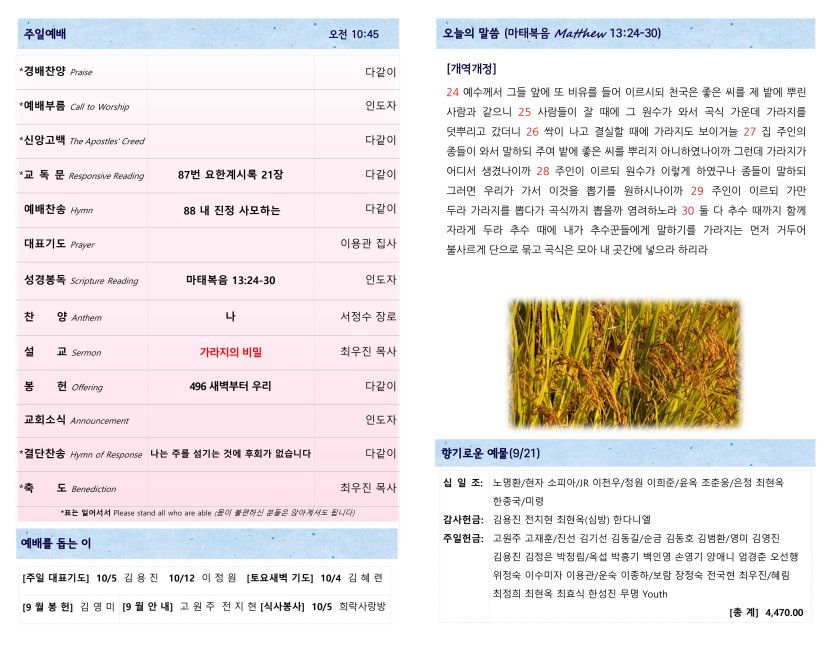 September 27, 2025 . 새찬양교회 [092825] 주일예배 주보
